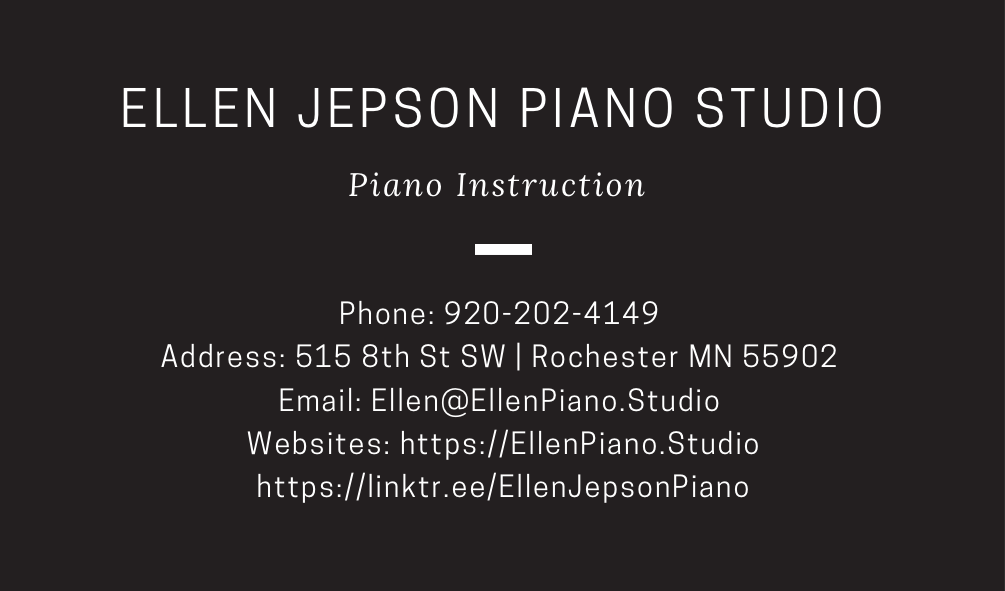 Ellen is a knowledgeable and talented piano teacher! She has a gift of making each piano lesson fun and personalized. Our son has learned so much from her and looks forward to his lessons each week. We’re excited to see him continue to progress with the piano!